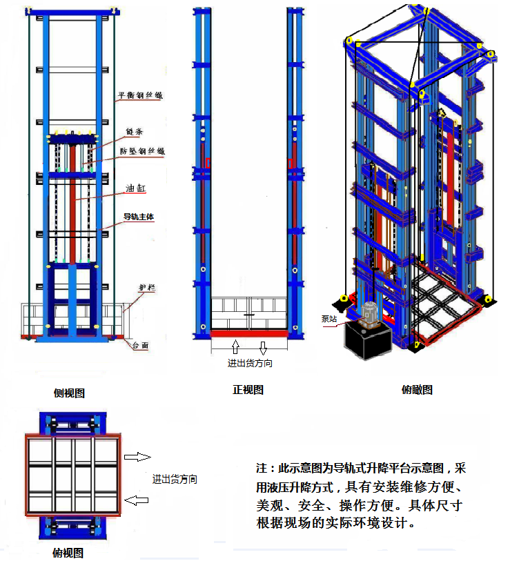 室外升降機(jī)(導(dǎo)軌式升降機(jī))也稱導(dǎo)軌式升降平臺(tái),屬于固定式升降平臺(tái)可根據(jù)現(xiàn)場(chǎng)環(huán)境定做使用;層門可貫通,廠房?jī)?nèi)外可相互戳開,方便、節(jié)省空間;特別適合2-3層鋼結(jié)構(gòu)廠房,內(nèi)外部均可使用.一般載重噸位0.5-5噸,升降高度1-15米。可以根據(jù)客戶要求設(shè)計(jì)定做定做。